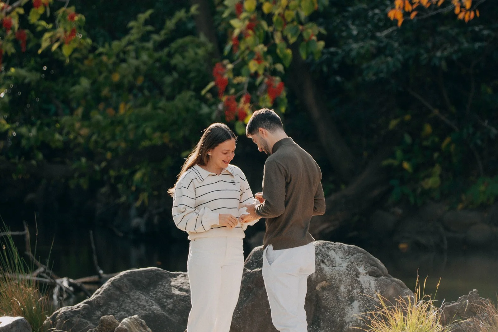 Because the proposal was a surprise, we carefully planned the logistics in advance. On the day itself, I blended in as a fellow park visitor while sending Daniel reference photos to guide him to the chosen spot. The plan came together smoothly, allowing me to capture the moment discreetly in both photo and video.