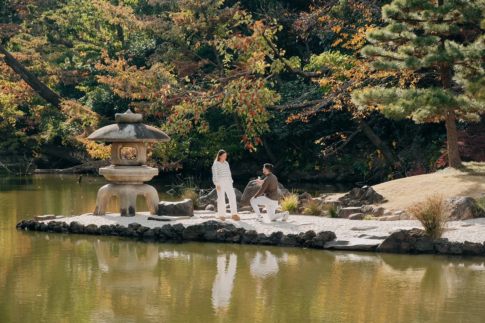 Daniel, an engineering manager visiting Tokyo, reached out while planning to propose to his girlfriend, Liv. Since their trip was scheduled for late November, he hoped to find a scenic location where autumn colors might still be visible. After discussing several options, he chose Shinjuku Gyoen and added a static video to accompany the photo coverage of the proposal.