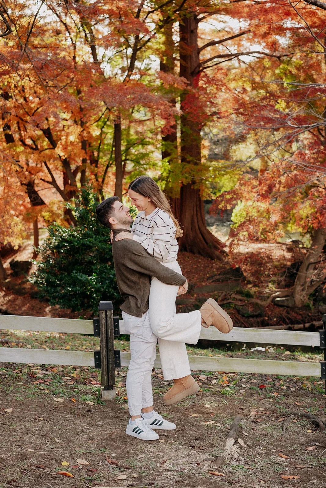 We were greeted with warm autumn tones that morning, which made a beautiful setting for portraits after the proposal. We spent time around Momijiyama, known for its maple trees, and took full advantage of the seasonal colors while documenting their newly engaged moment.