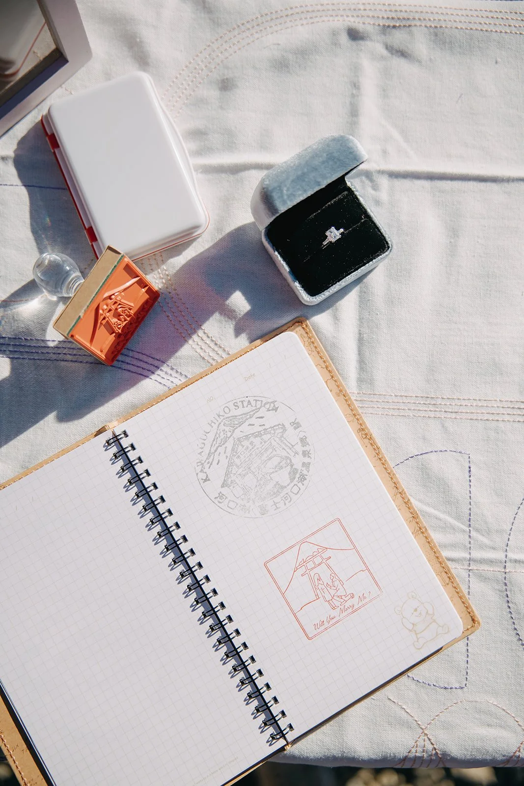 He wanted to include a custom stamp with the message “Will you marry me?” to make the proposal more personal. So our team designed and produced the stamp specifically for this moment.