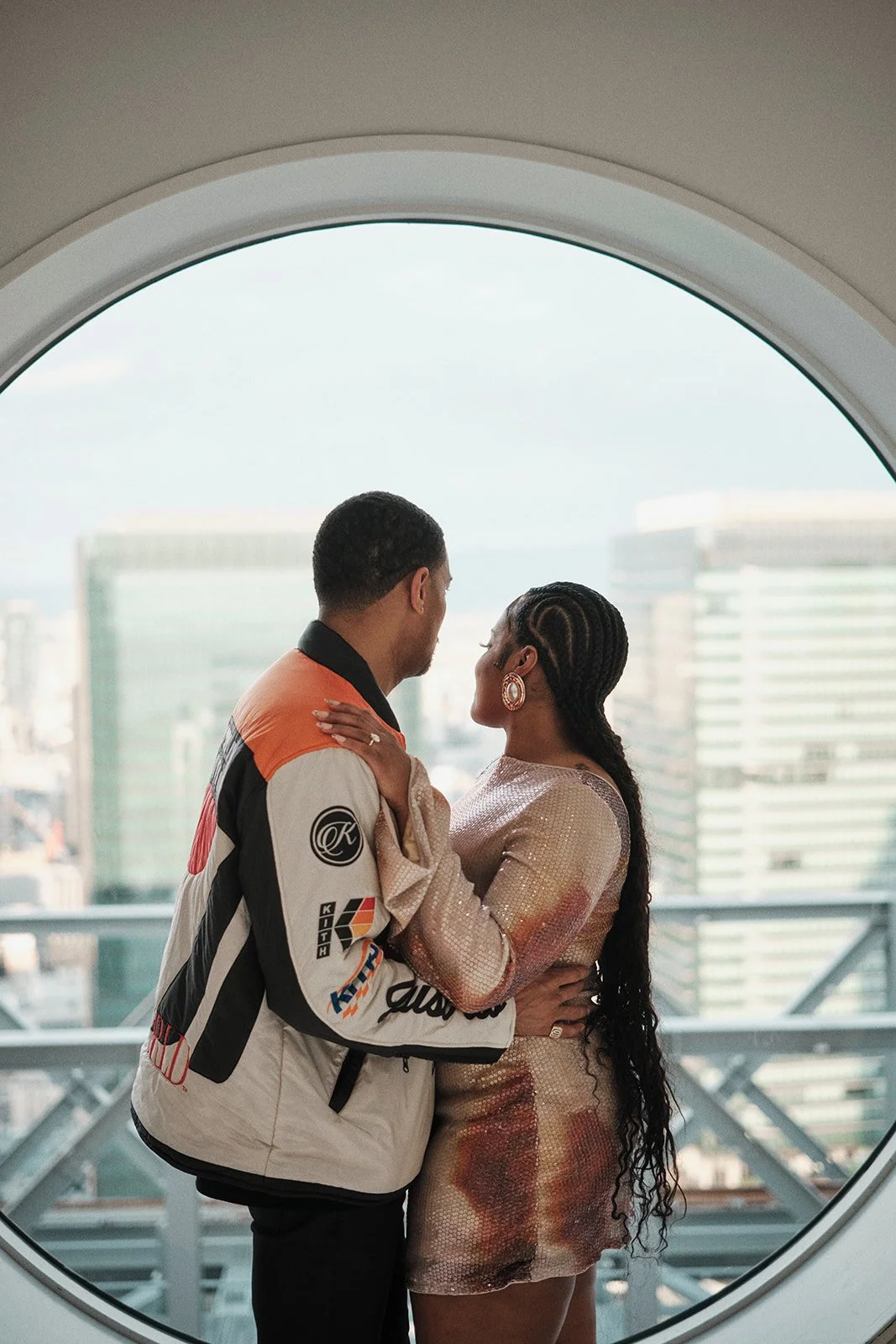 After the proposal, we paused so Jaleesa could return to the hotel and change into a new outfit for the next part of the shoot. We later met at the Umeda Sky Building, where we timed the portraits perfectly with the golden light of sunset.