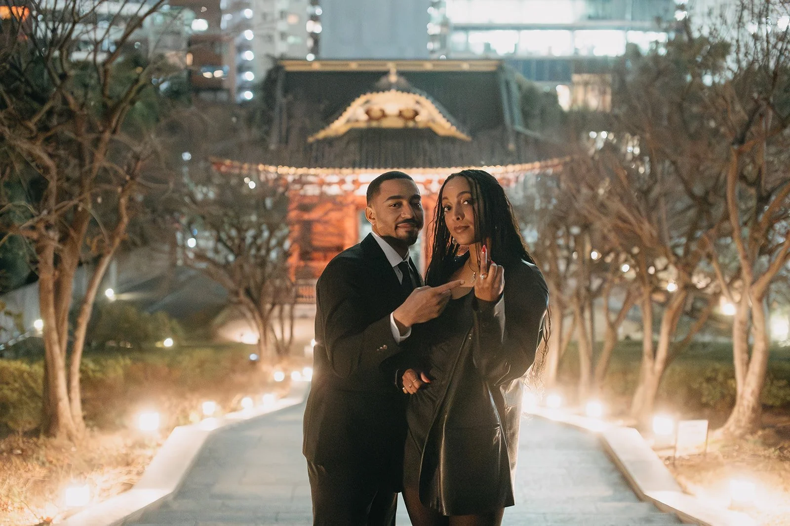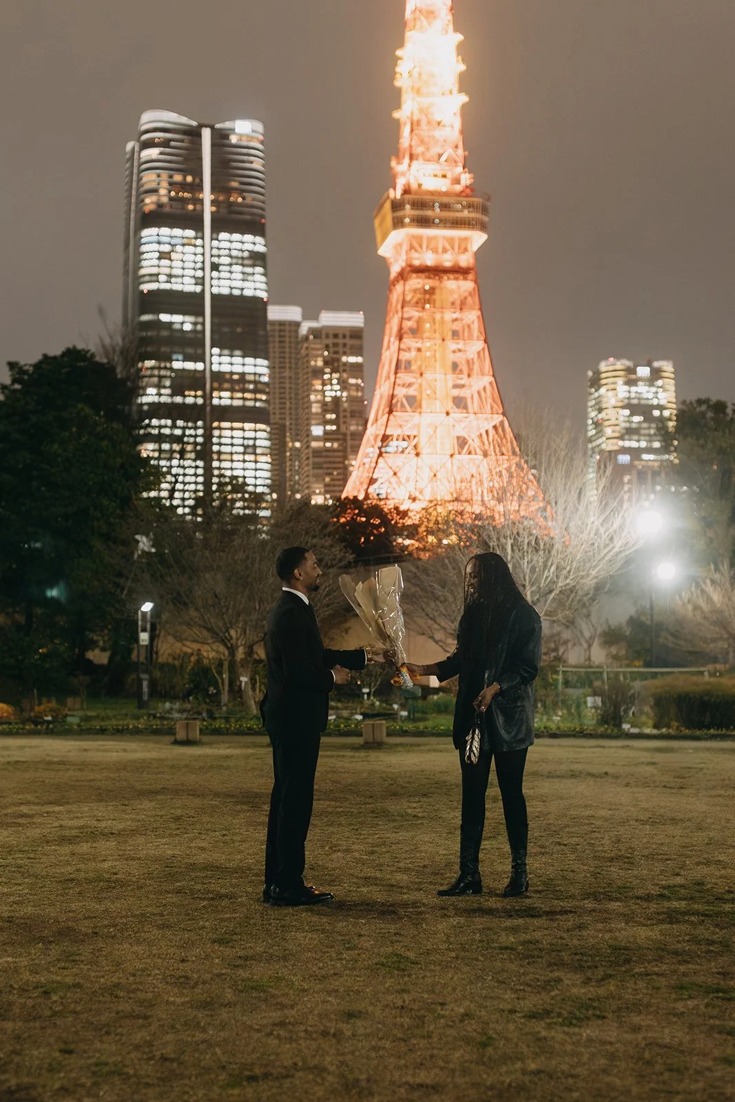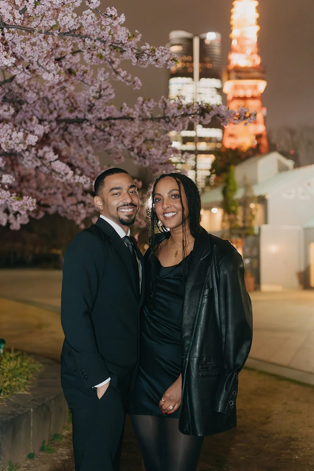 The city lights, cherry blossoms, and Tokyo Tower created a beautiful backdrop for the moment. The photos captured a blend of elements that Tokyo is known for, combining the romance of the proposal with the atmosphere of the city at night.