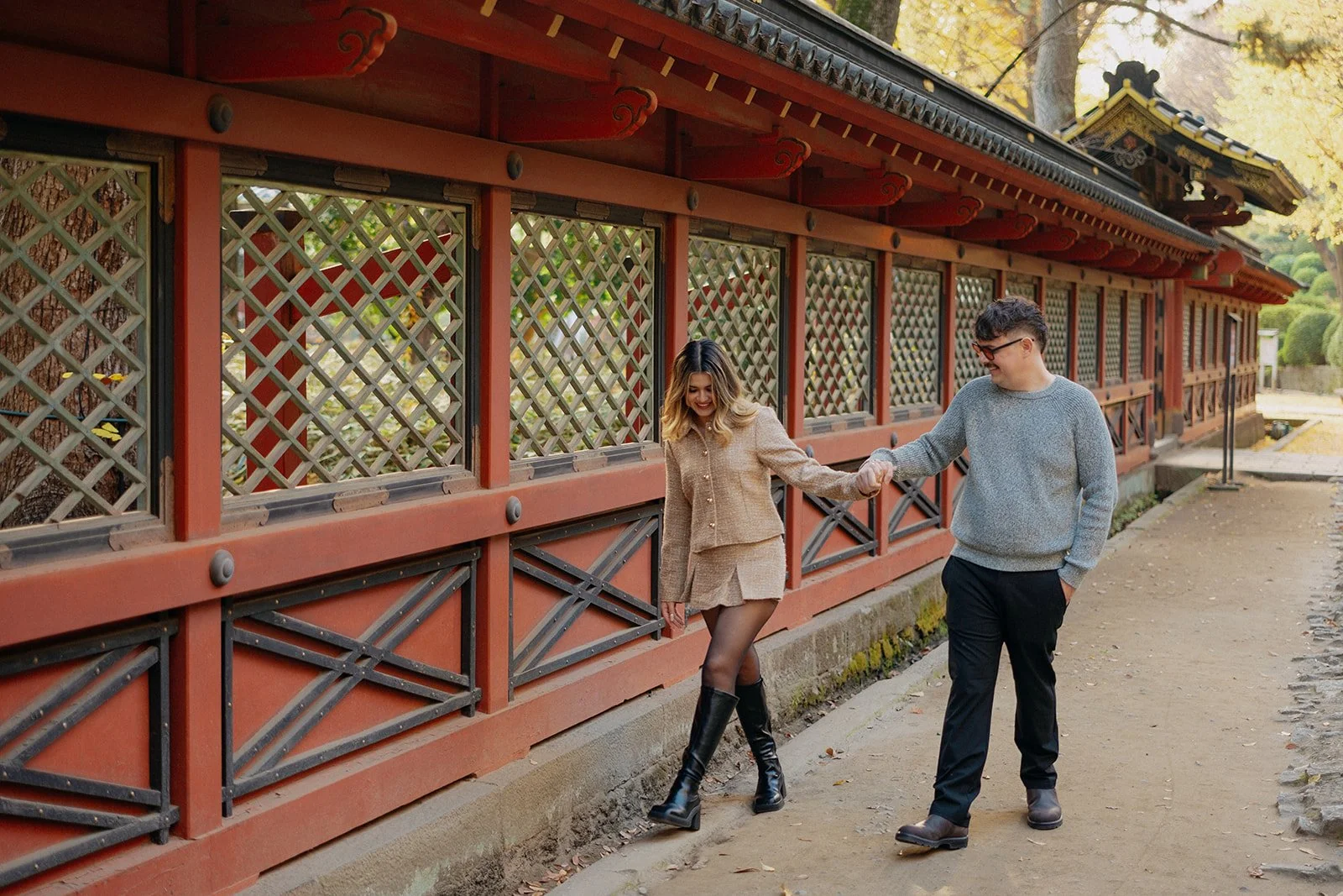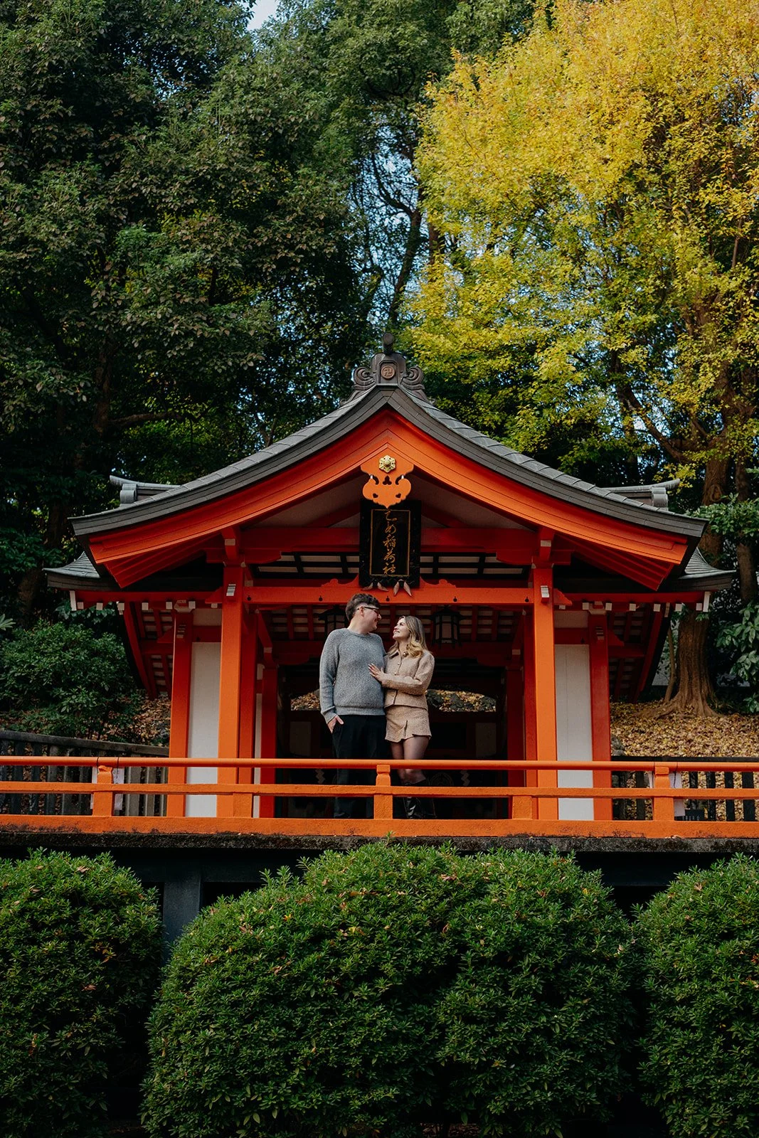 Jonathon and I had already been coordinating the proposal details ahead of their trip to make sure everything went smoothly. He mentioned that he wanted to propose the day after they arrived, so they could spend the rest of their holiday celebrating as an engaged couple. Since he wanted photos in two locations, I shared recommendations for romantic spots near Suga Shrine that would complement their vision.