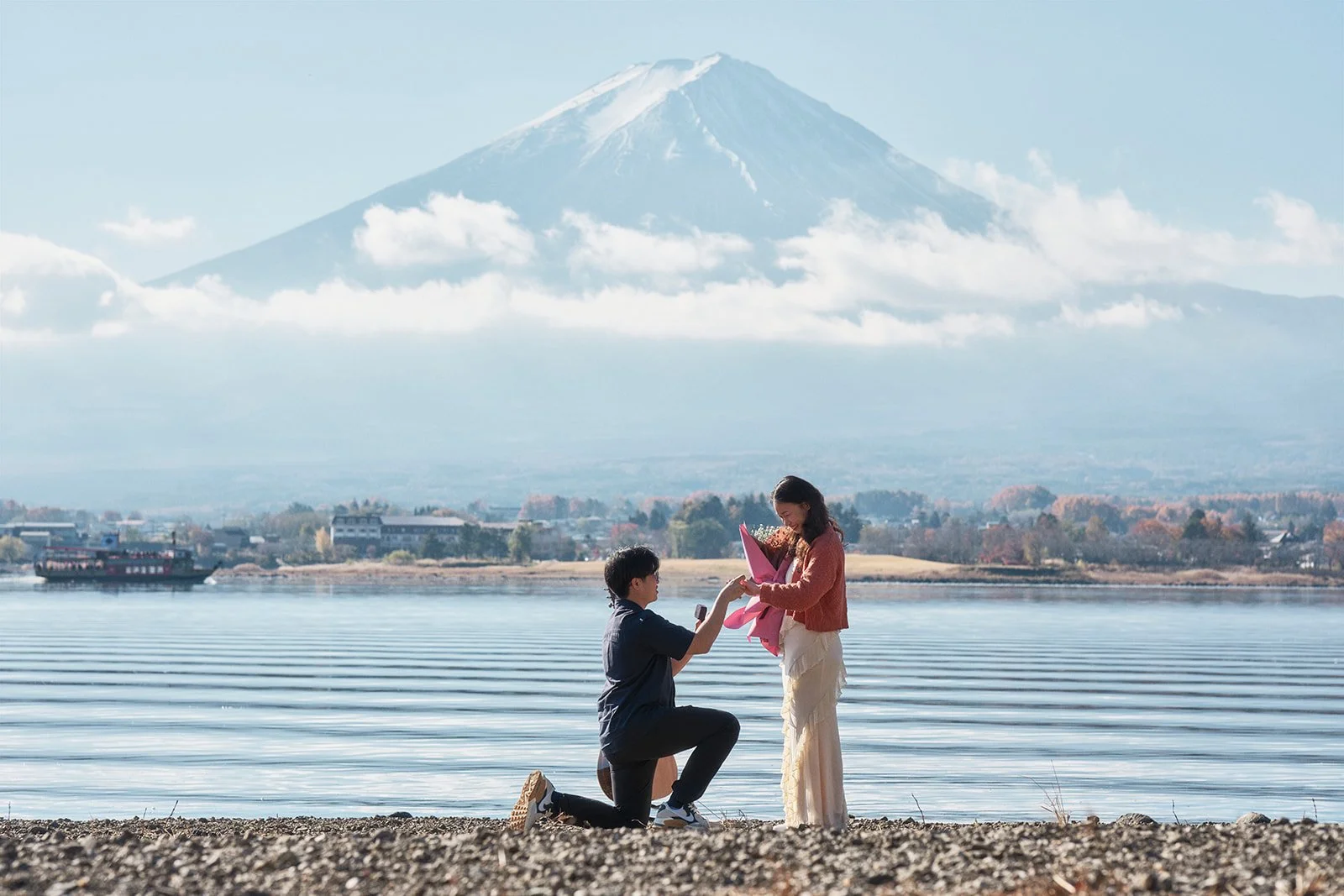 Proposals at Mt. Fuji may be popular, but personal touches such as music, flowers, and meaningful details make each one unique. No matter the location, every proposal is always special because it is a moment shared between you and the person you love.